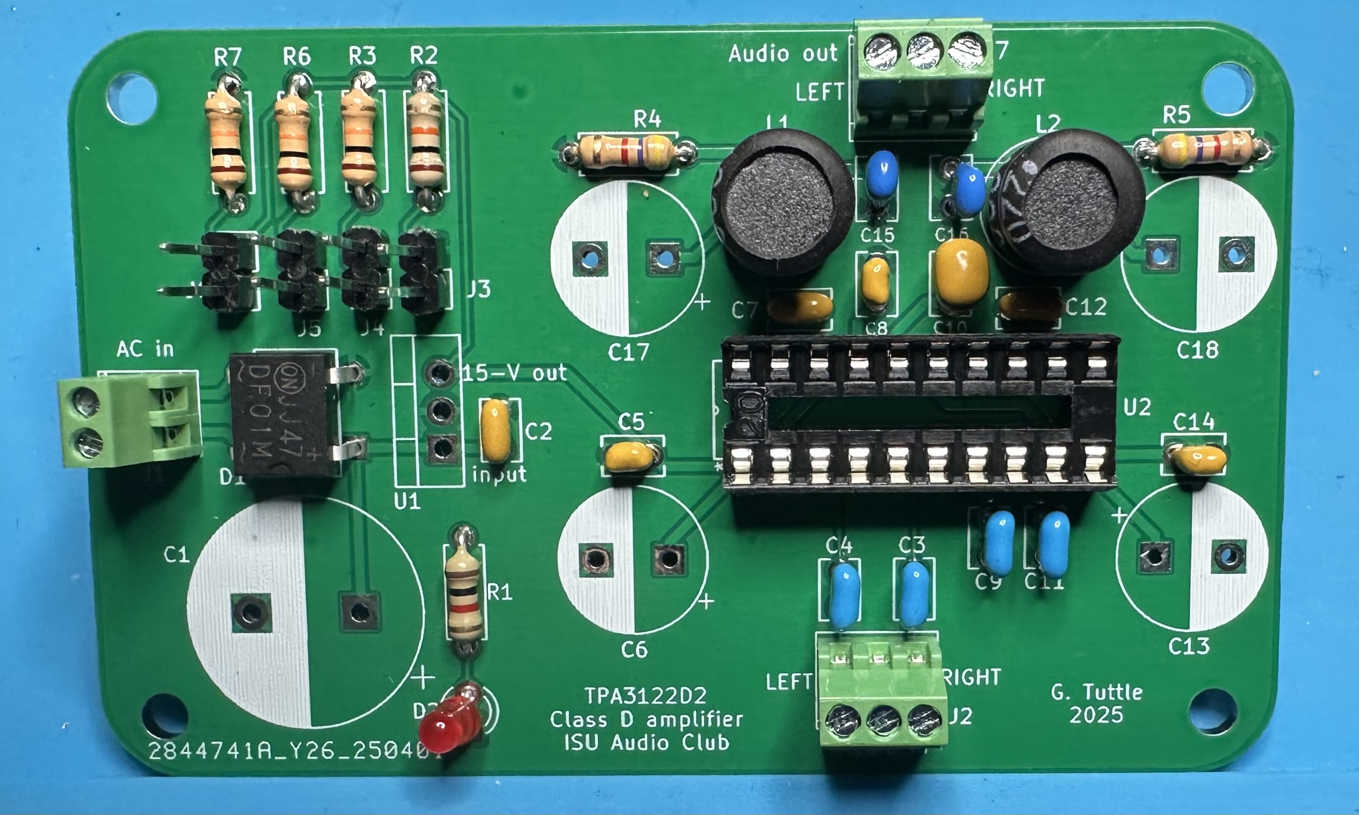 Below are steps for building the class-D amp using the TPA3122 chip from Texas Instruments.