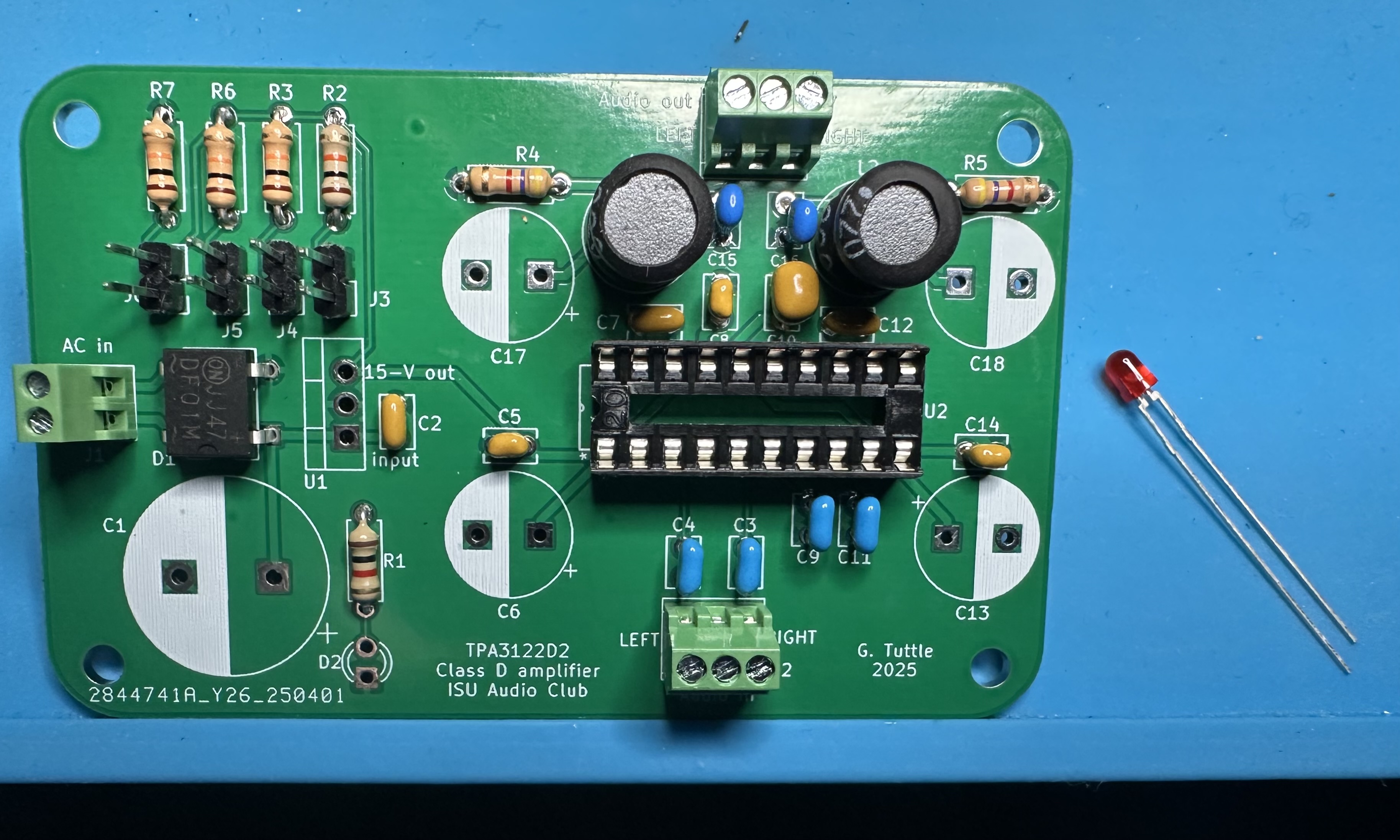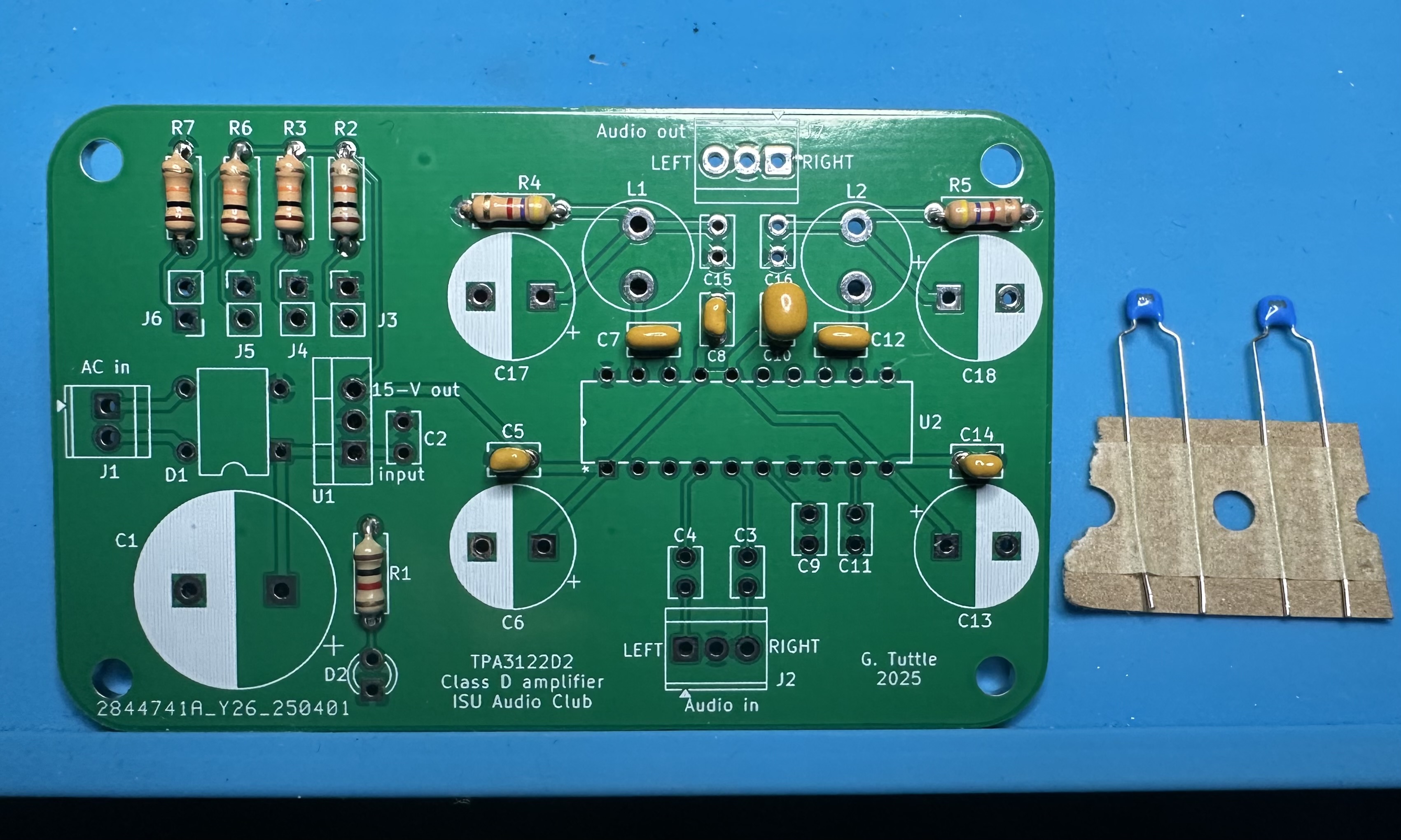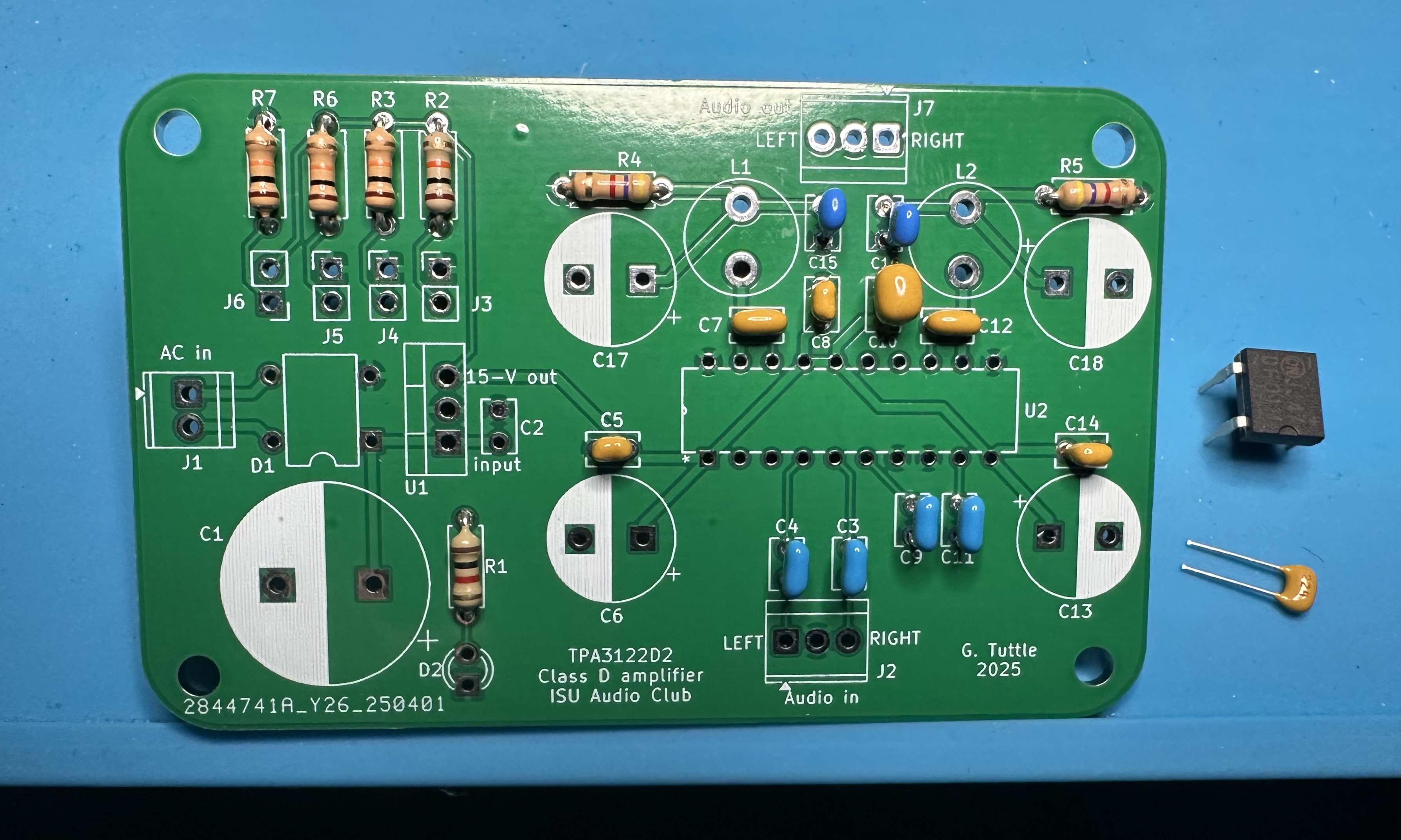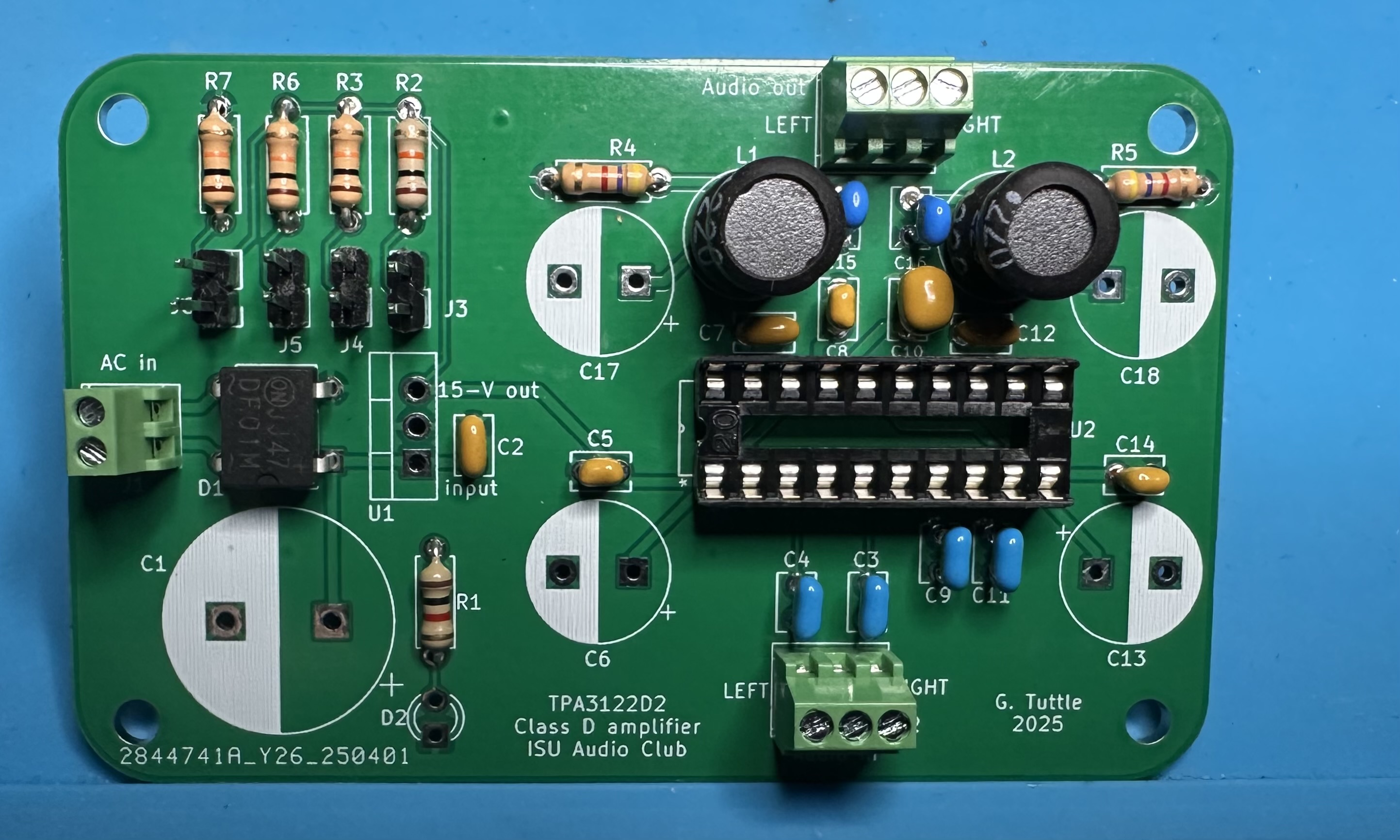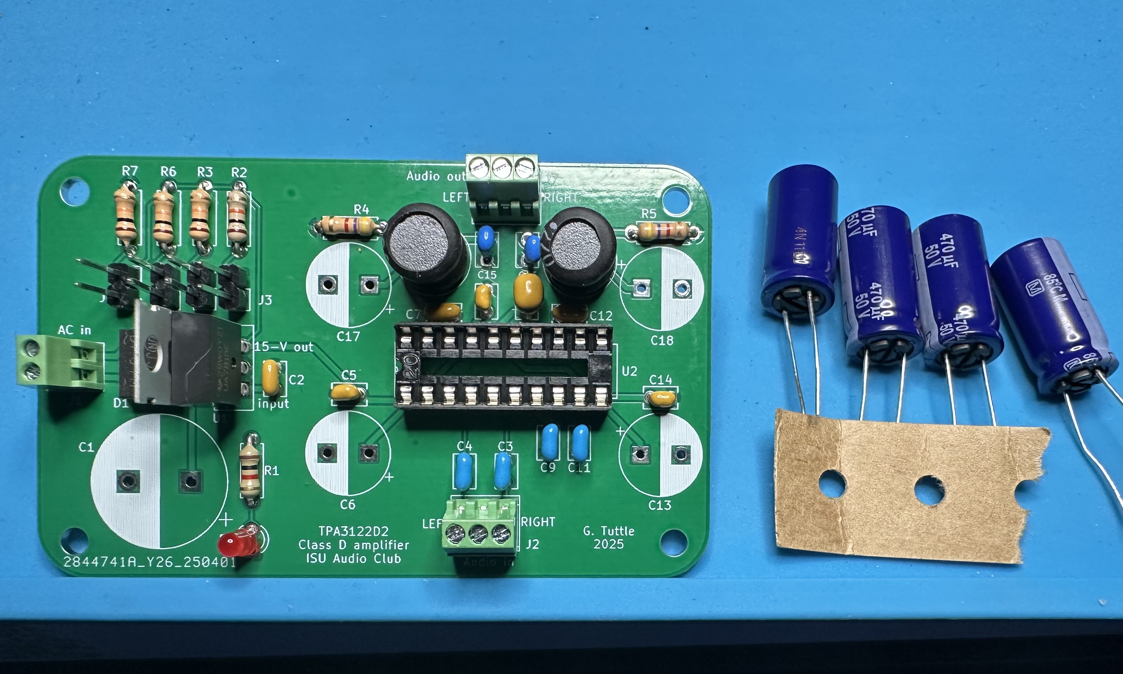 Below are steps for building the class-D amp using the TPA3122 chip from Texas Instruments.