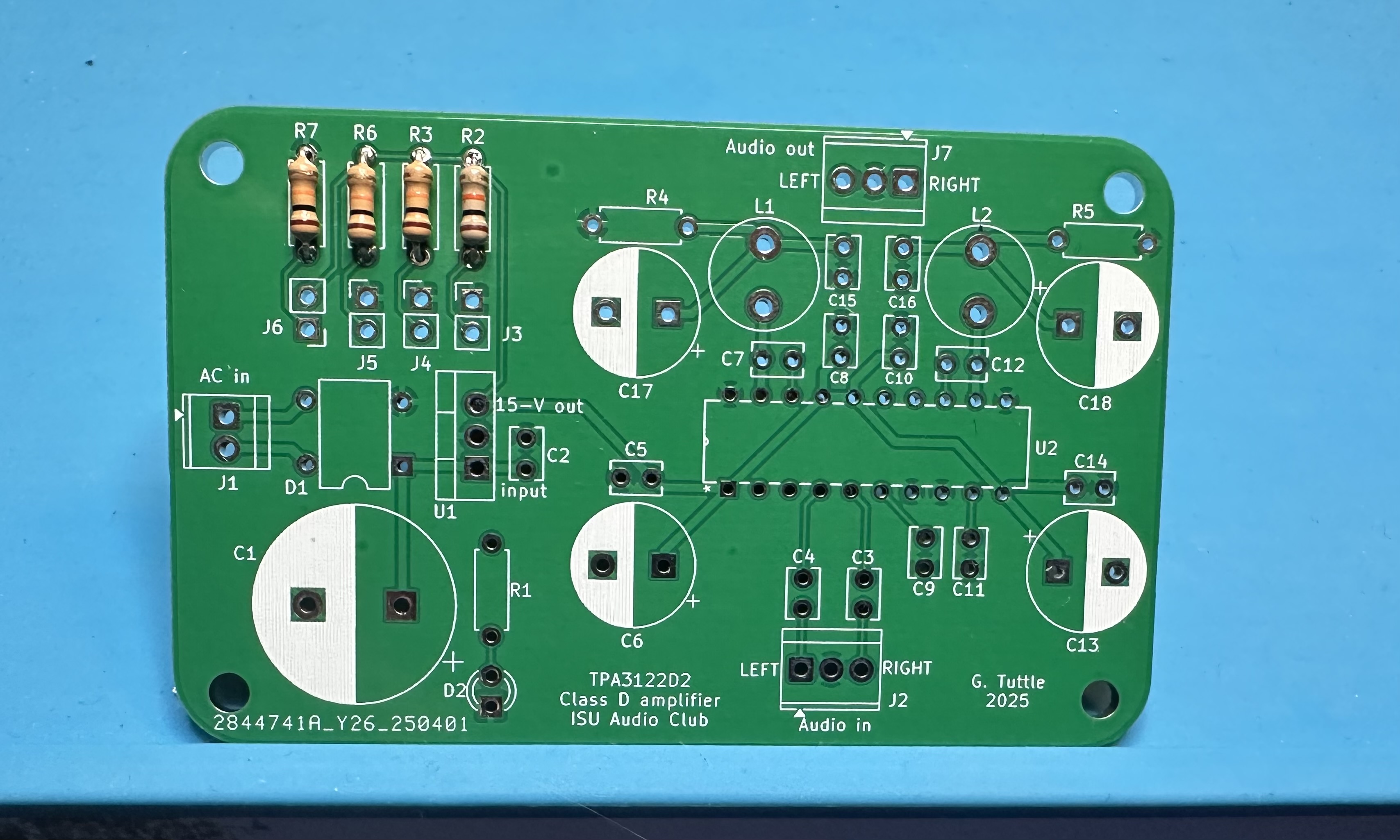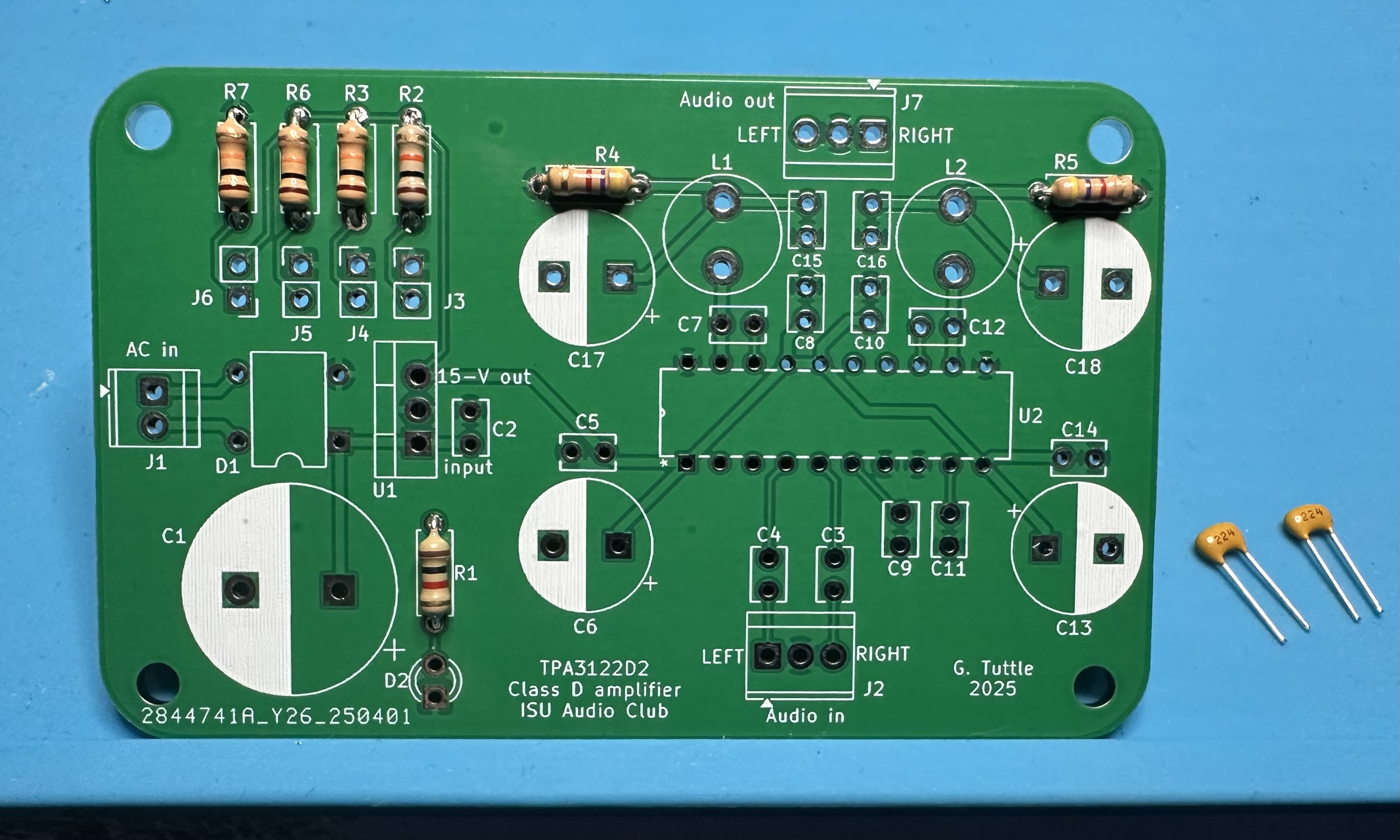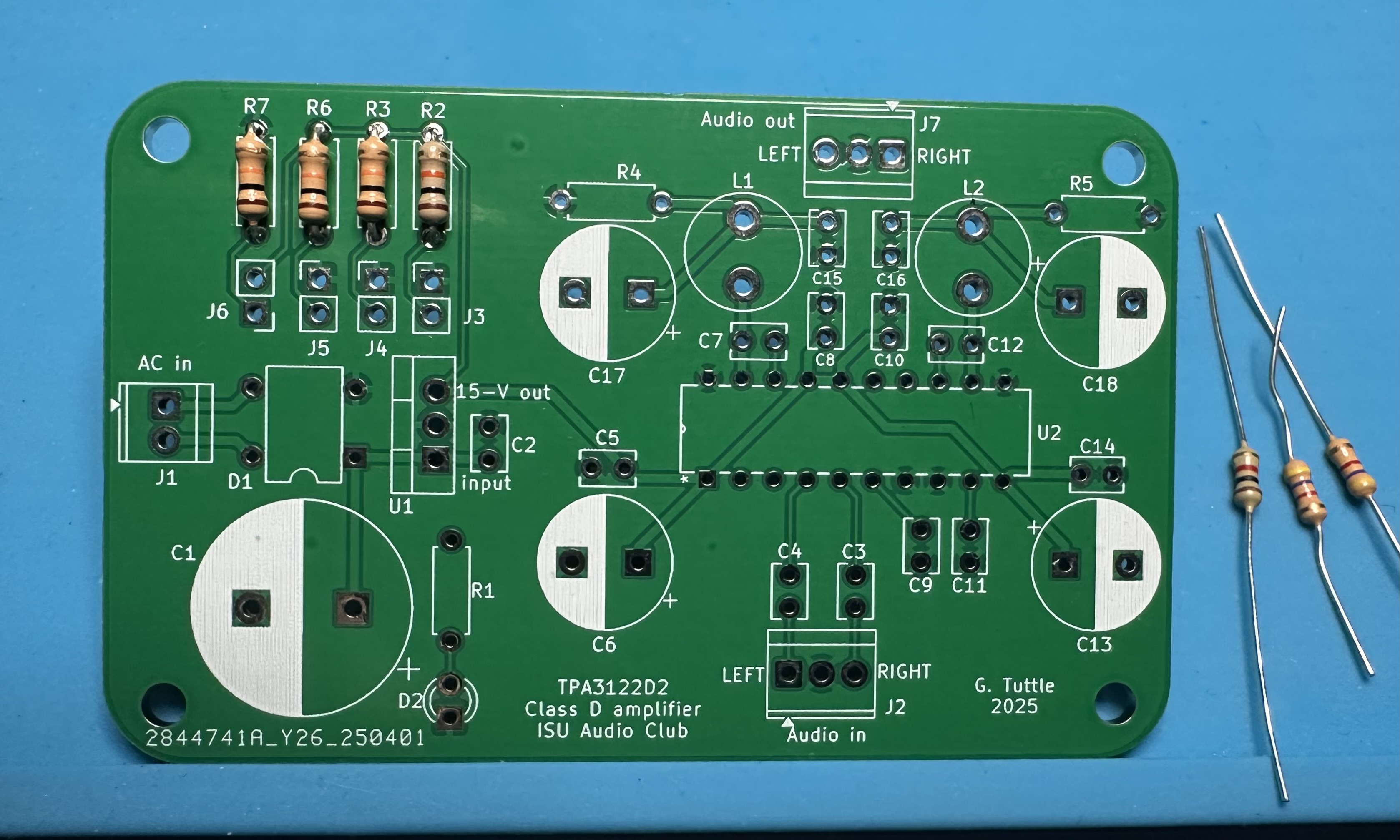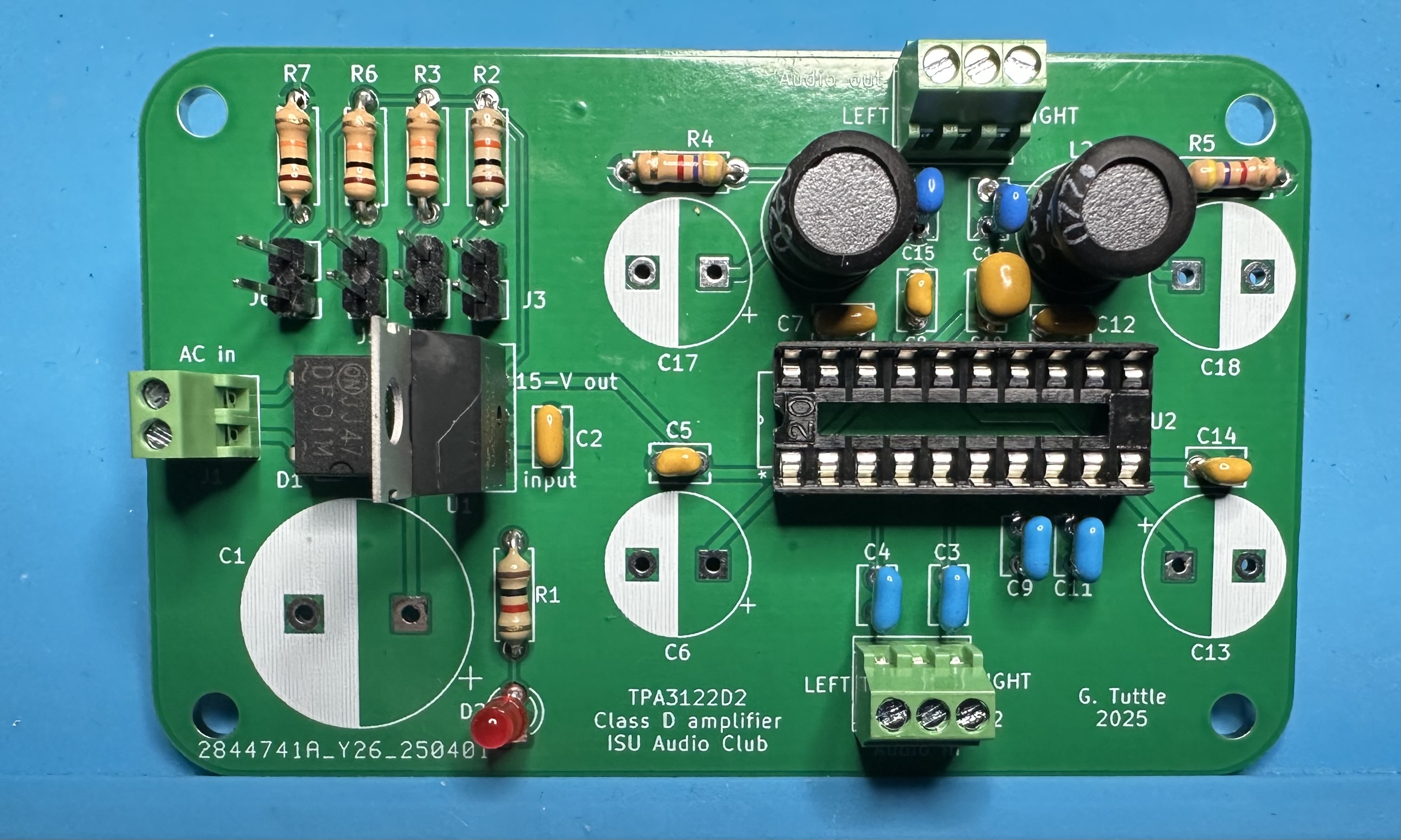 Below are steps for building the class-D amp using the TPA3122 chip from Texas Instruments.