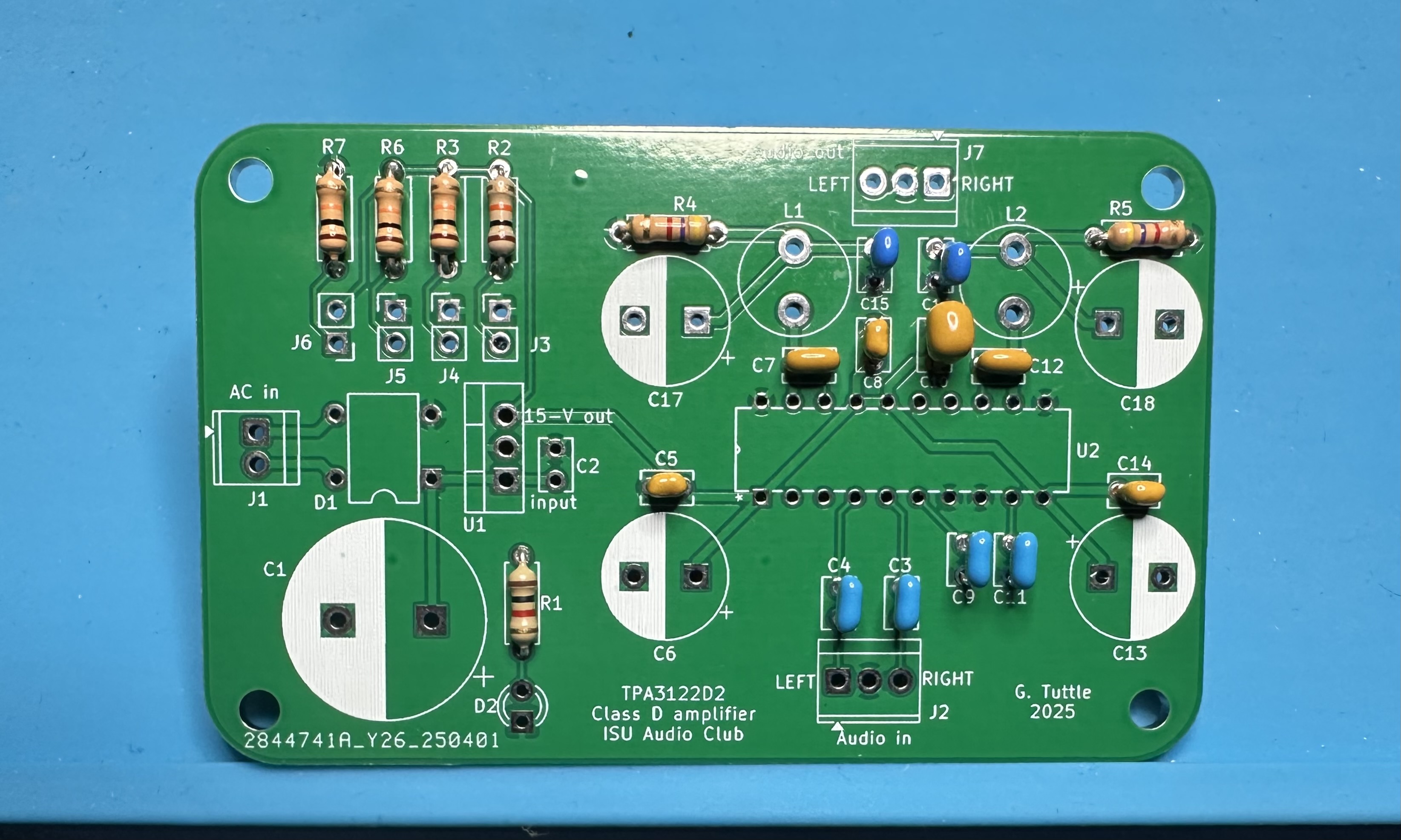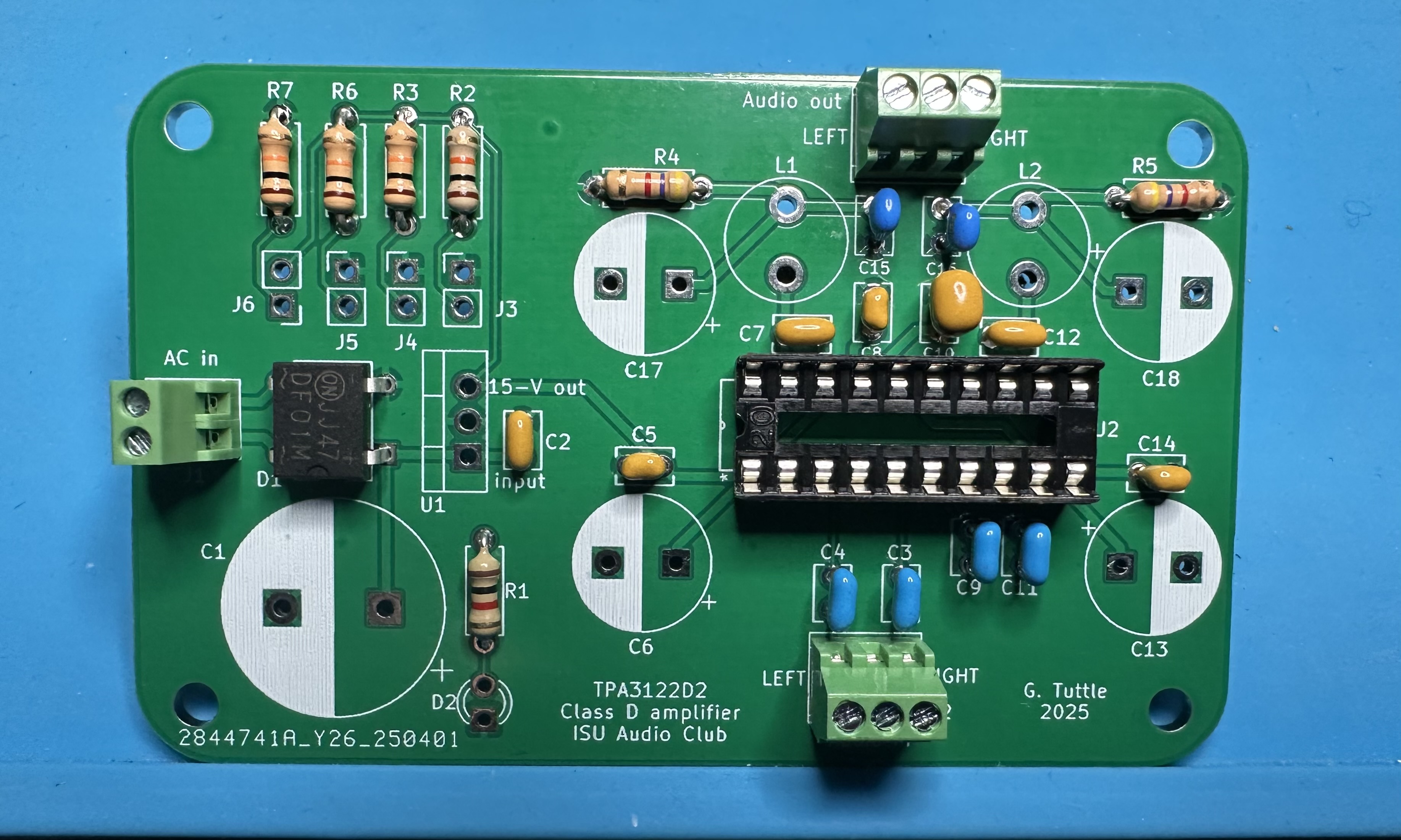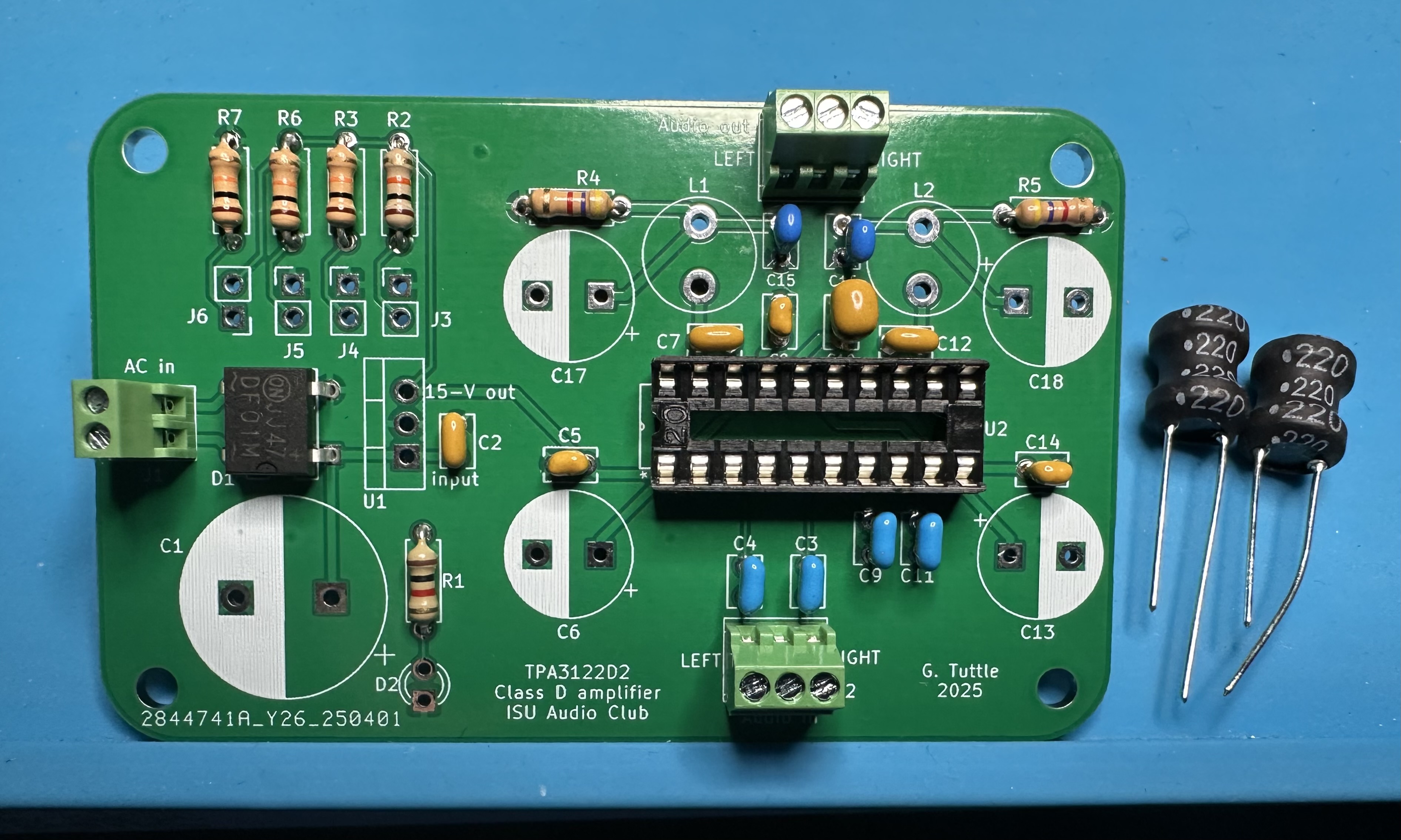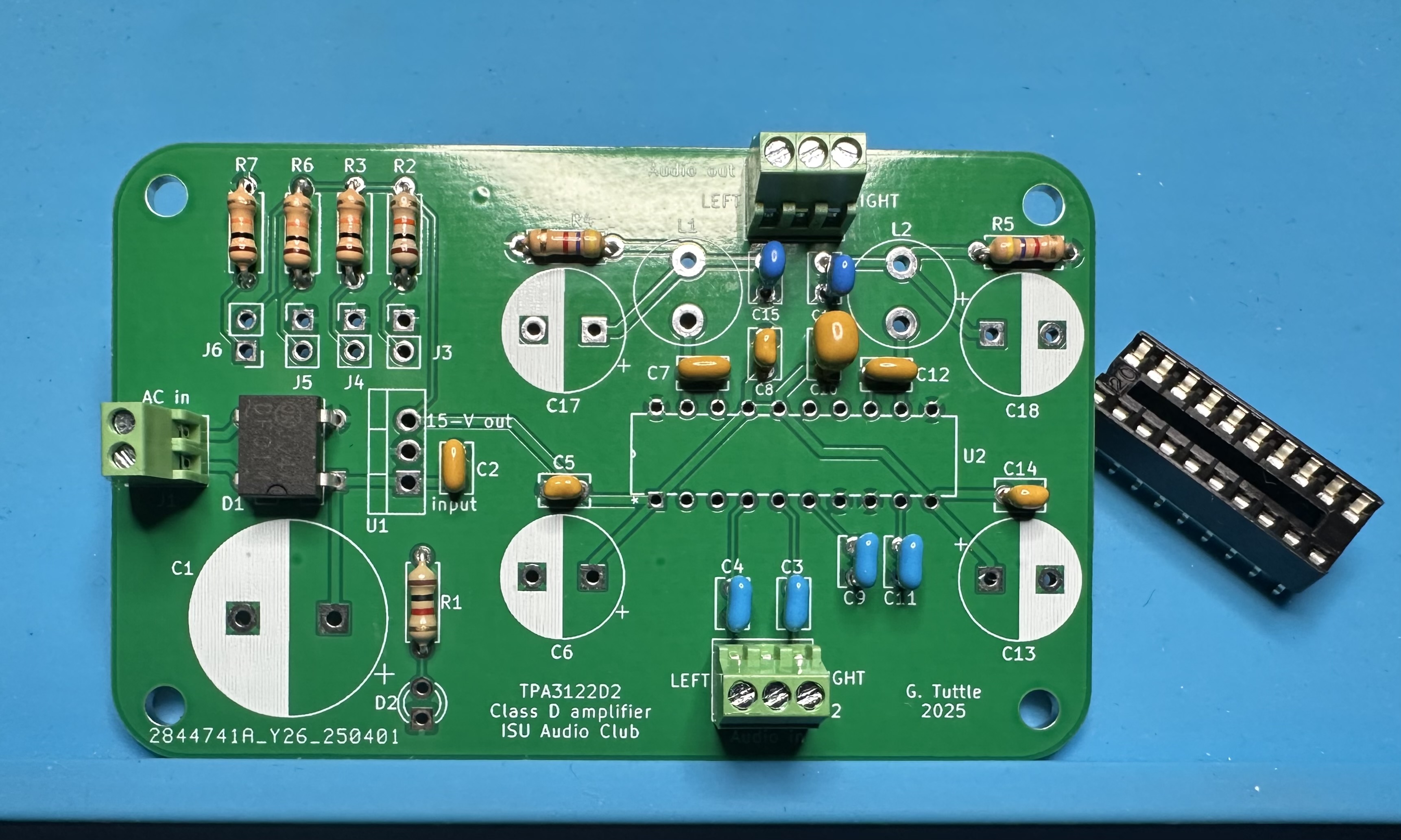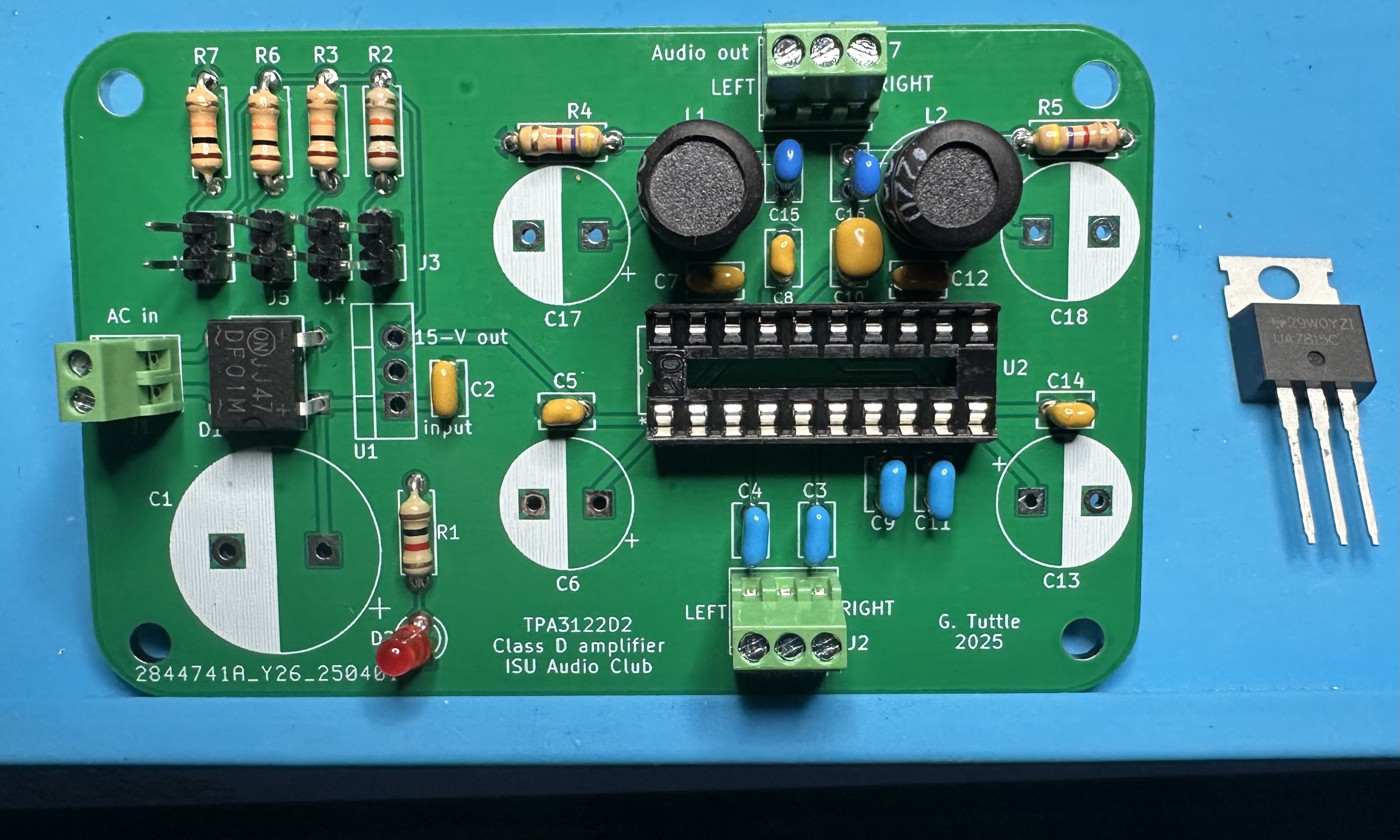 Below are steps for building the class-D amp using the TPA3122 chip from Texas Instruments.
