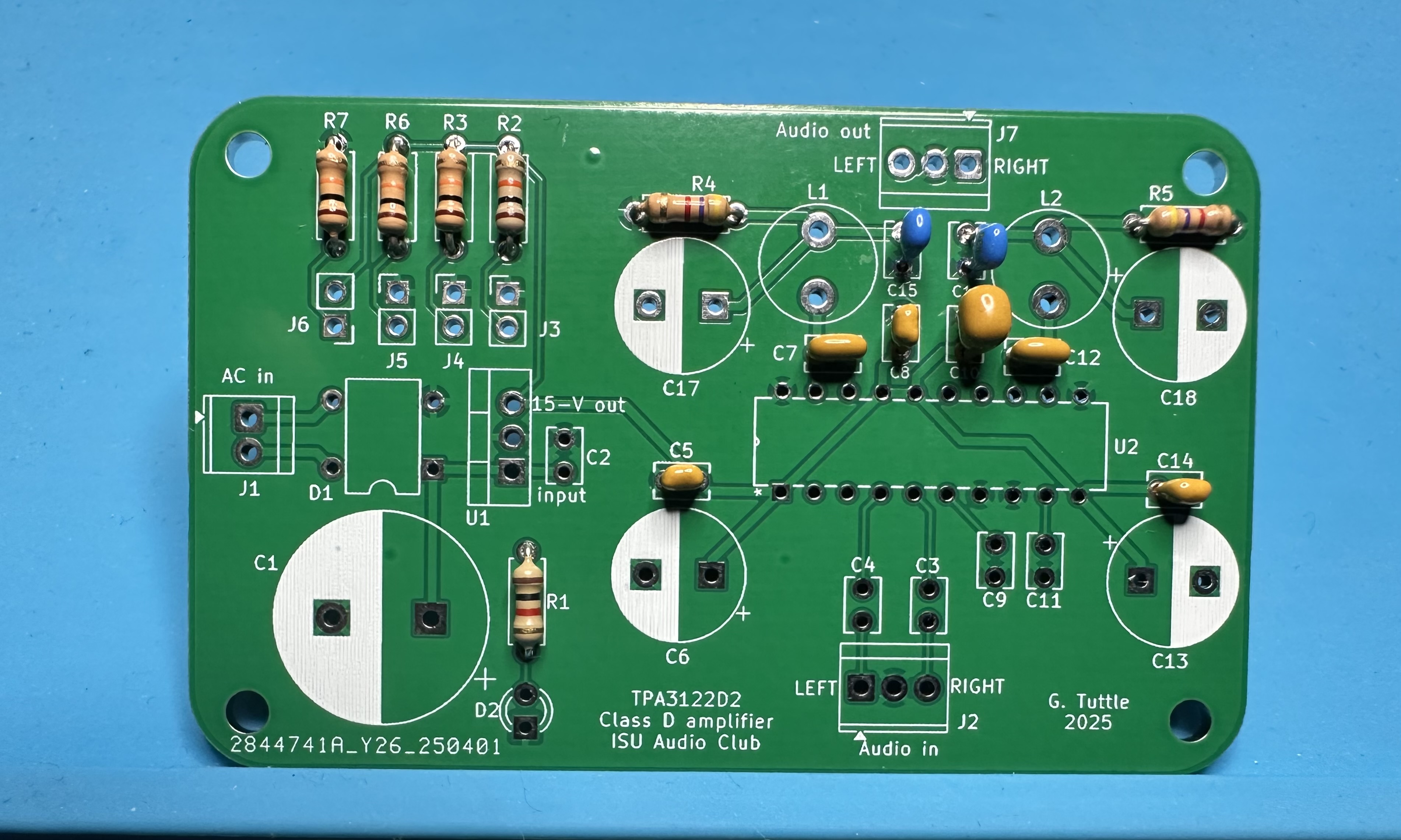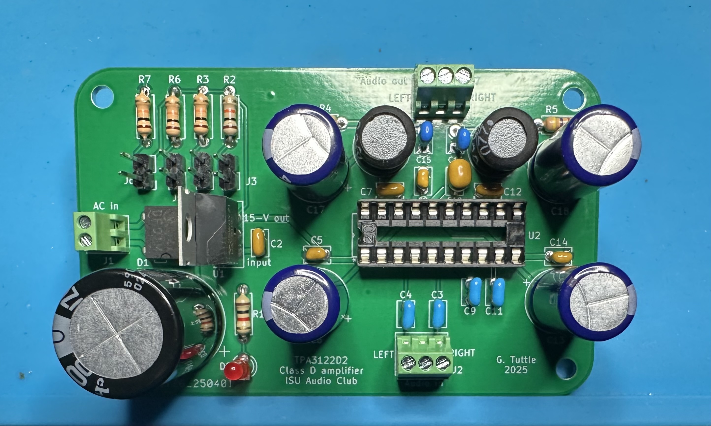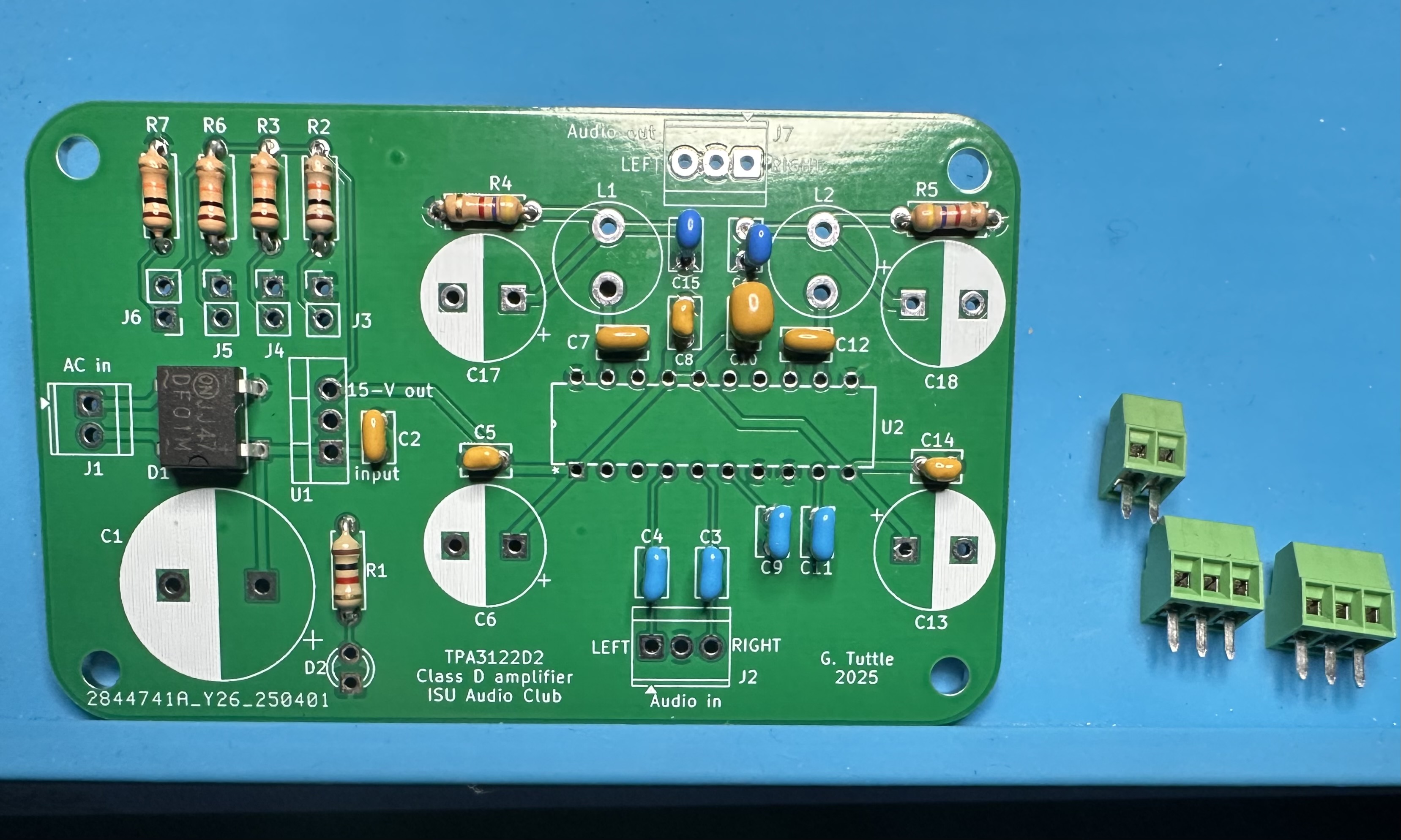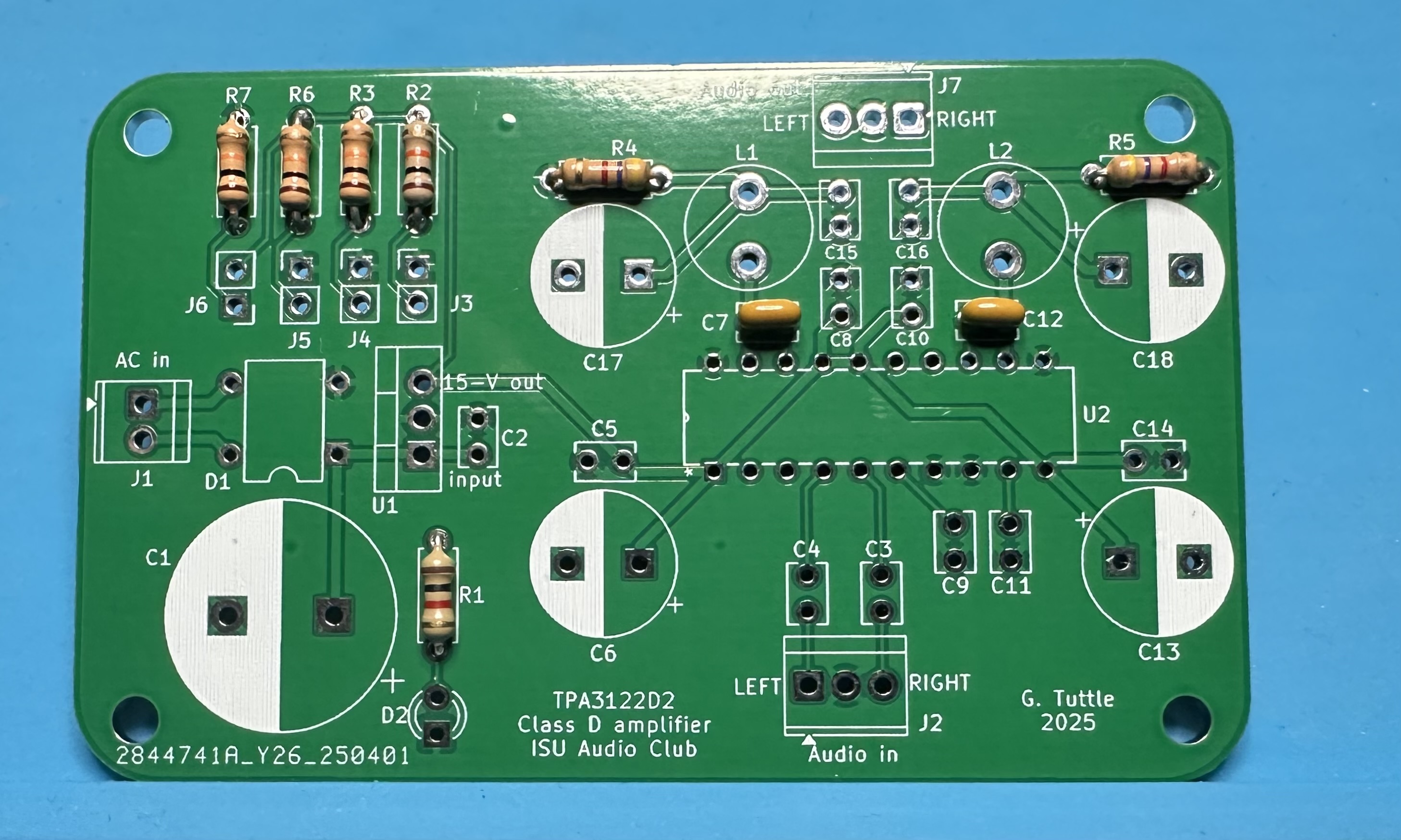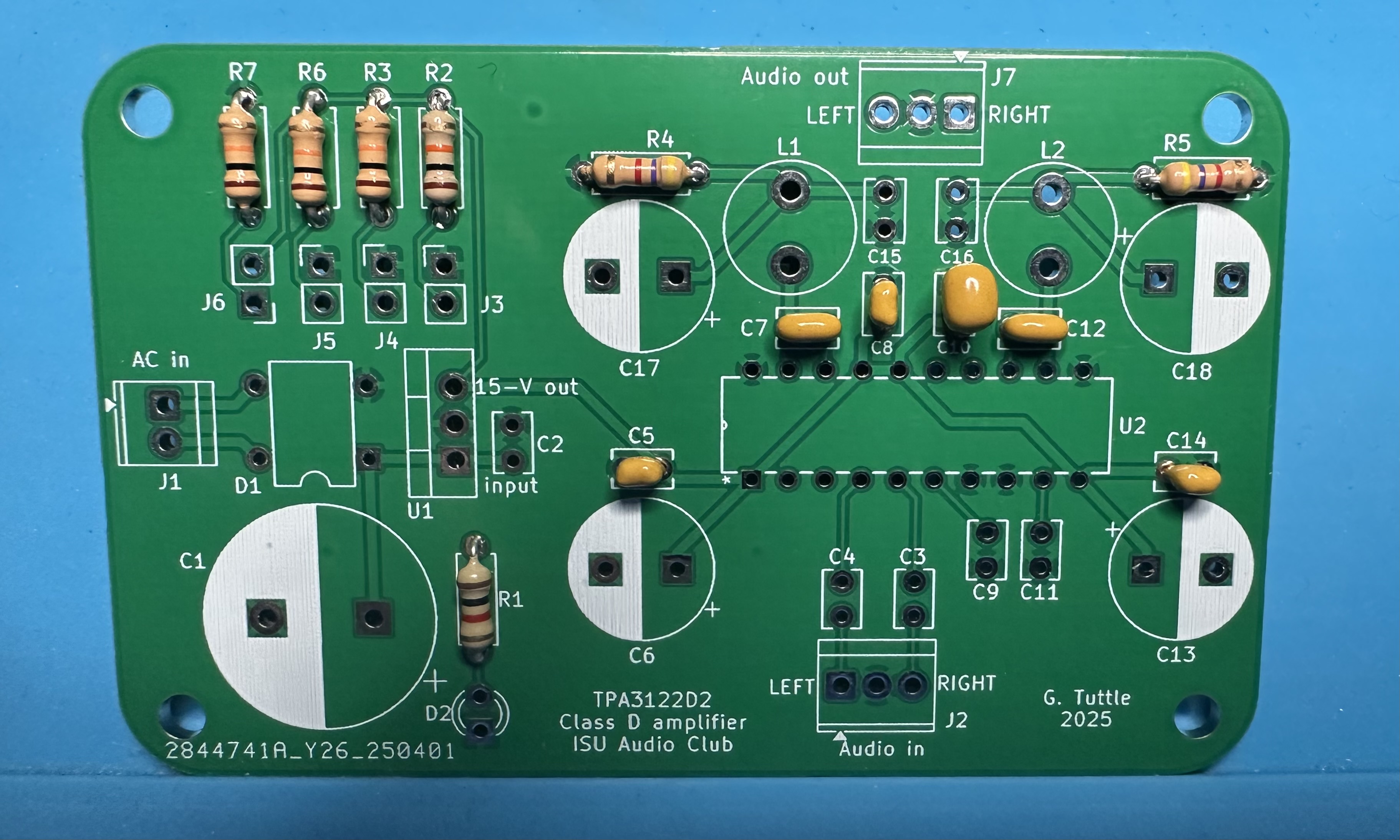 Below are steps for building the class-D amp using the TPA3122 chip from Texas Instruments.