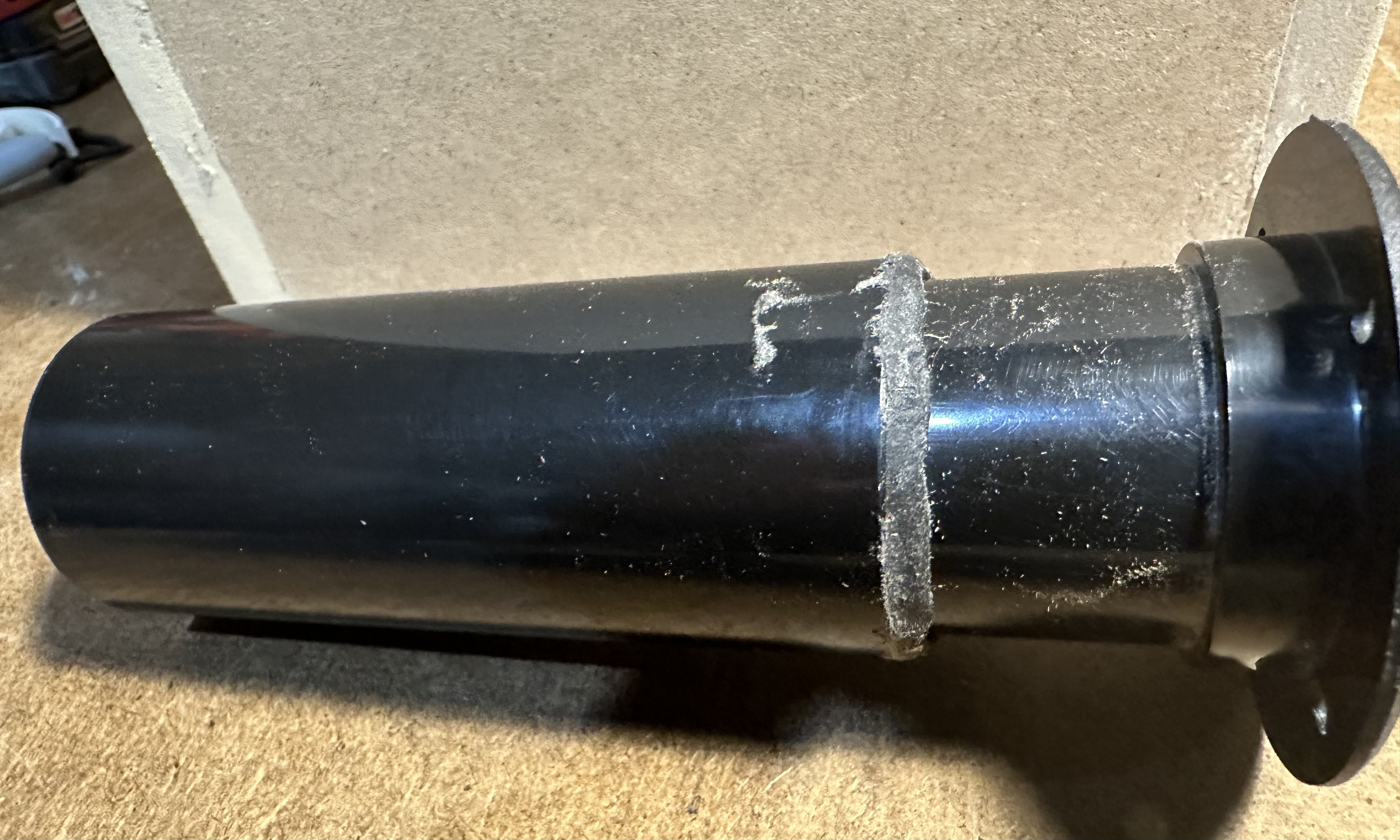 - Put the two halve of the port tube together and adjust the length to six inches from end to end. Secure the two halves together at that length. Use duct tape (Tape all the way around), or glue, or the fancy speaker caulk that GT has available. (As shown here.)