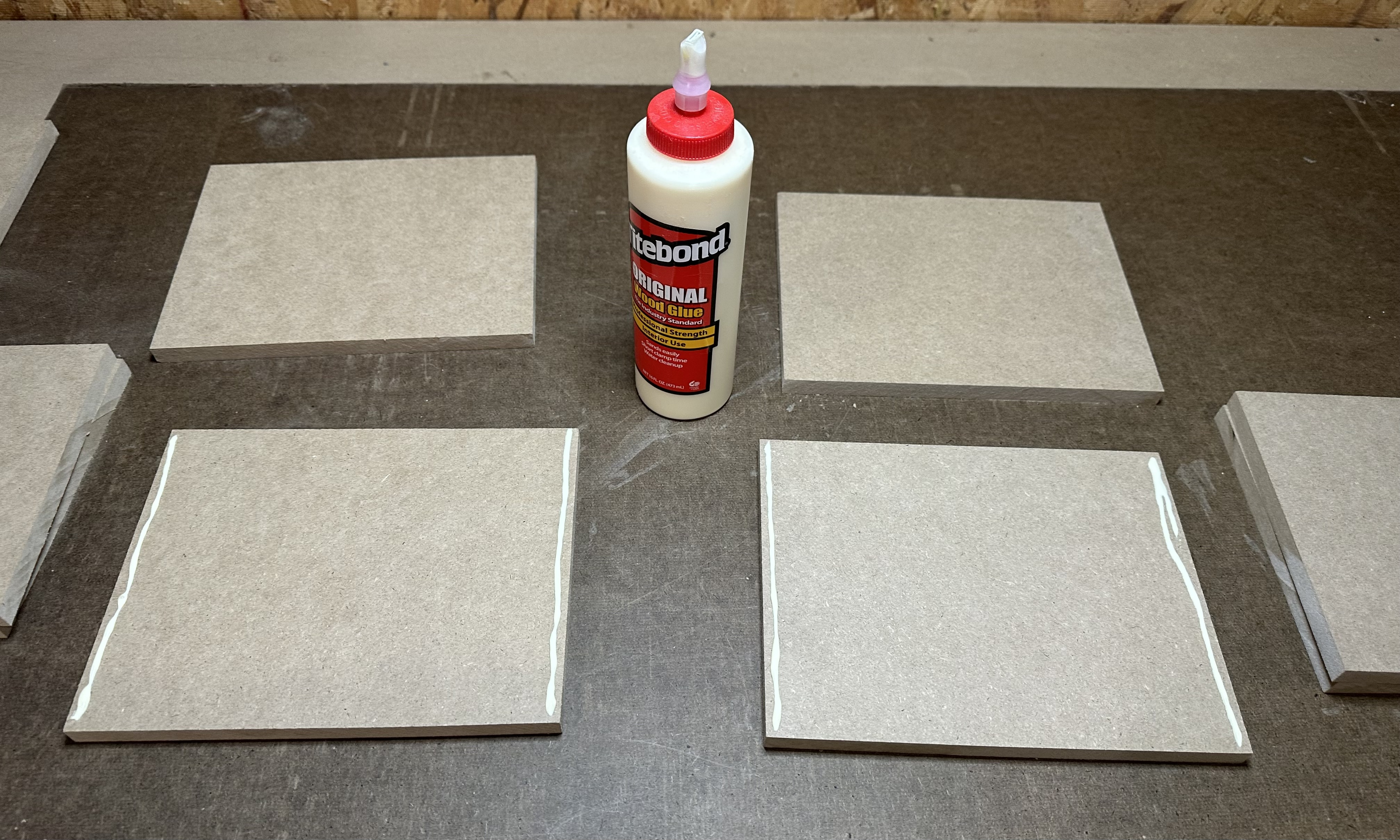 - Lay the back panel flat on the workbench. Apply a thin bead of glue around the outer perimeter.
