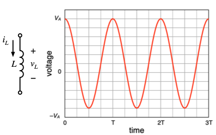 vL(t) = VA·cos ωt, where VA = 4 V and ω = 100 krad/sec.