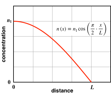 In some region of a semiconductor, the electron concentration varies sinusoidally with distance, as shown below,