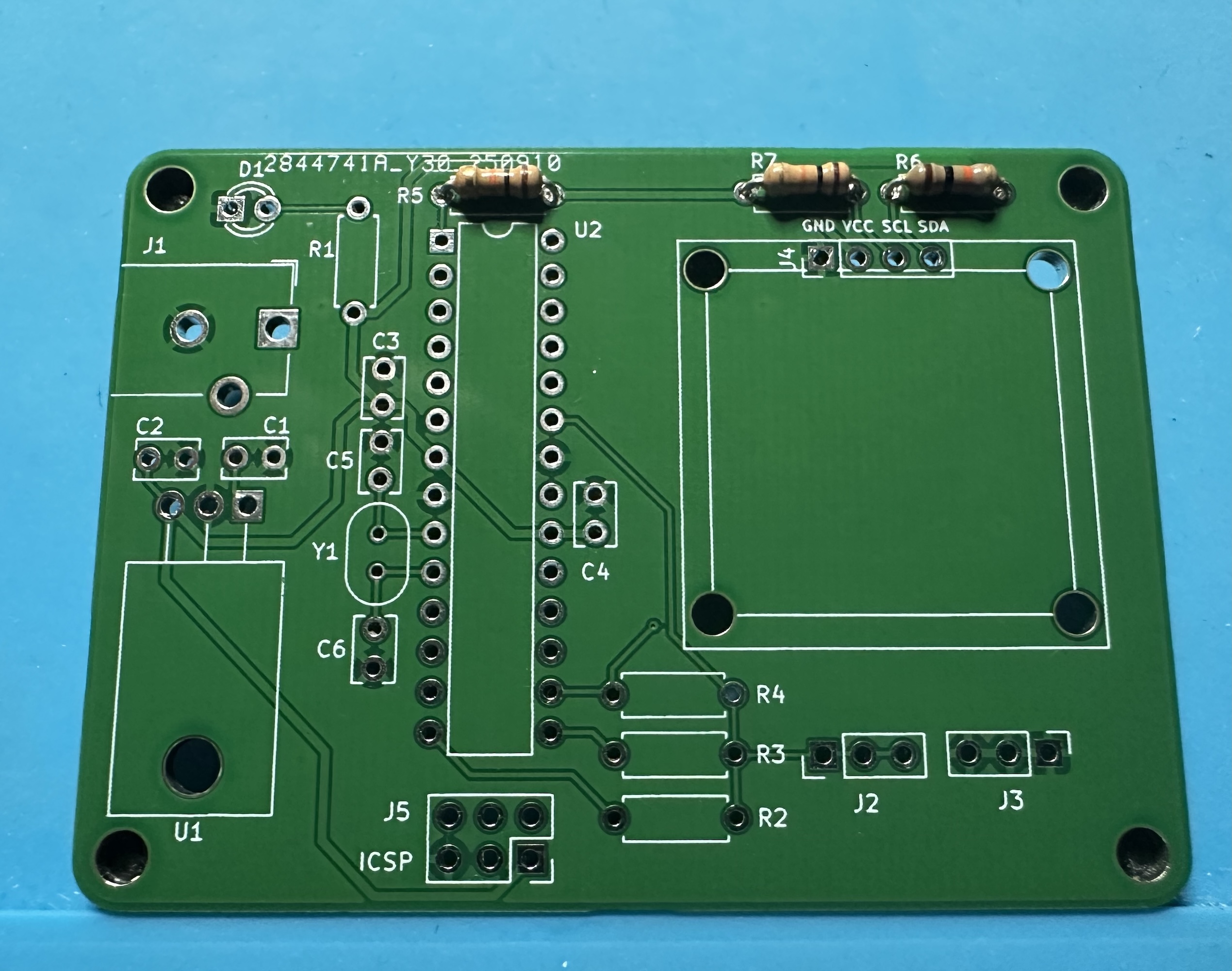 - As usual, we start small and work our way to the bigger parts. The three 10-kΩ resistors (brown-black-orange) resistors are easy to do. These are 5% tolerance resistors. Two are pullups for the I2C serial communications channel (R6 and R7) and one is the pullup for the Atmega reset (R5).