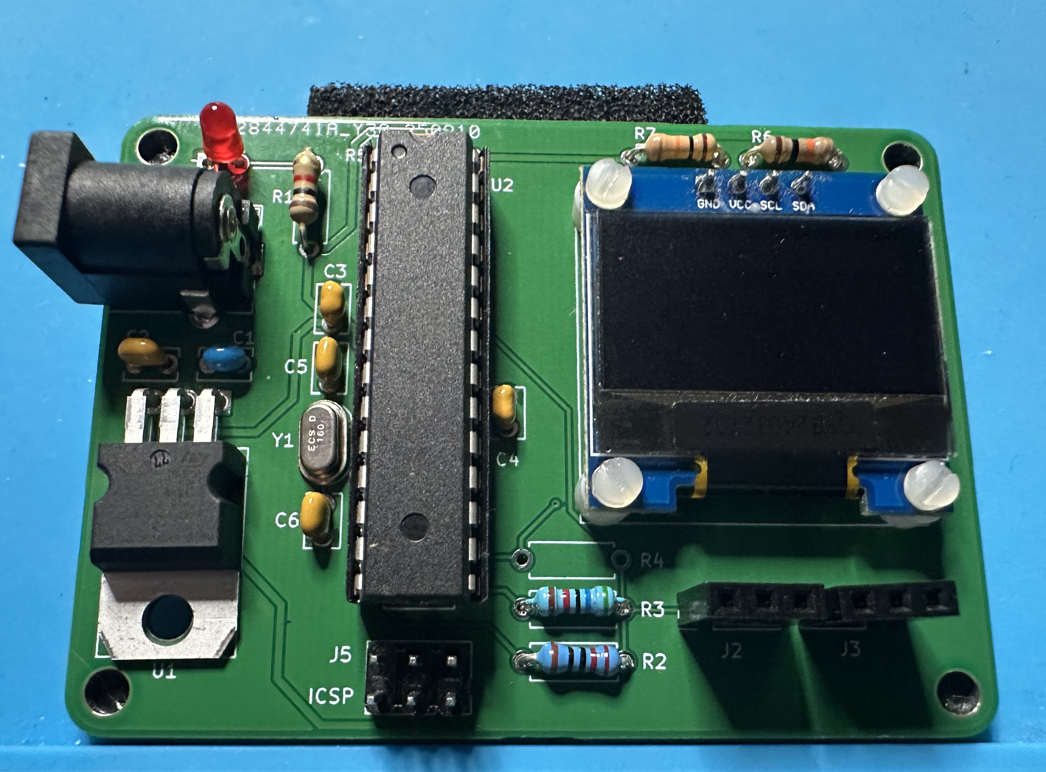 - Home stretch! Attach the OLED display and solder it in place. Suggested approach: Push all four of the nylon screws through the holes. It's a tight fit and you will need to apply a bit of force to get the screws through. (It will be OK!) The turn the display over and put the four spacers on the screws. Next turn the PCB over and insert it onto the display. Thread on the four nuts and use a screw driver to tighten everything up. Finally, solder in the four pins for the display.