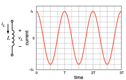 iL(t) = IA·cos ωt, where IA = 30 mA and ω = 4 krad/sec.