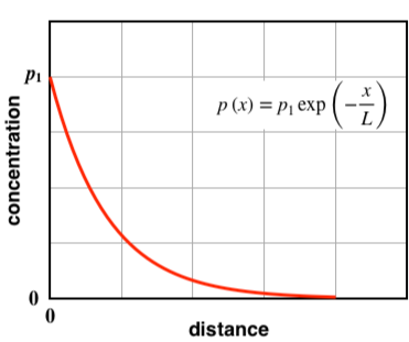 In some region of a semiconductor, the hole concentration varies exponentially with distance, as shown below,